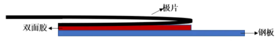 取一塊平整的薄鋼板,長度約200-300mm,寬度約40-60mm;首先在鋼板中心貼上一條雙面膠(長度大于樣品測試長度即可,與極片等寬),用力撫平,保證雙面膠緊密貼合在鋼板中心。揭開雙面膠,將極片貼合在膠條上,必須保證極片與膠紙完成匹配貼合,否則測試剝離力的寬度發(fā)生變化,測試值不準確,并且剝離曲線會出現(xiàn)跳點或波浪。