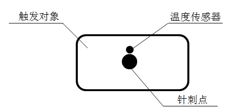 針刺觸發(fā)時溫度傳感器的布置位置示意圖: