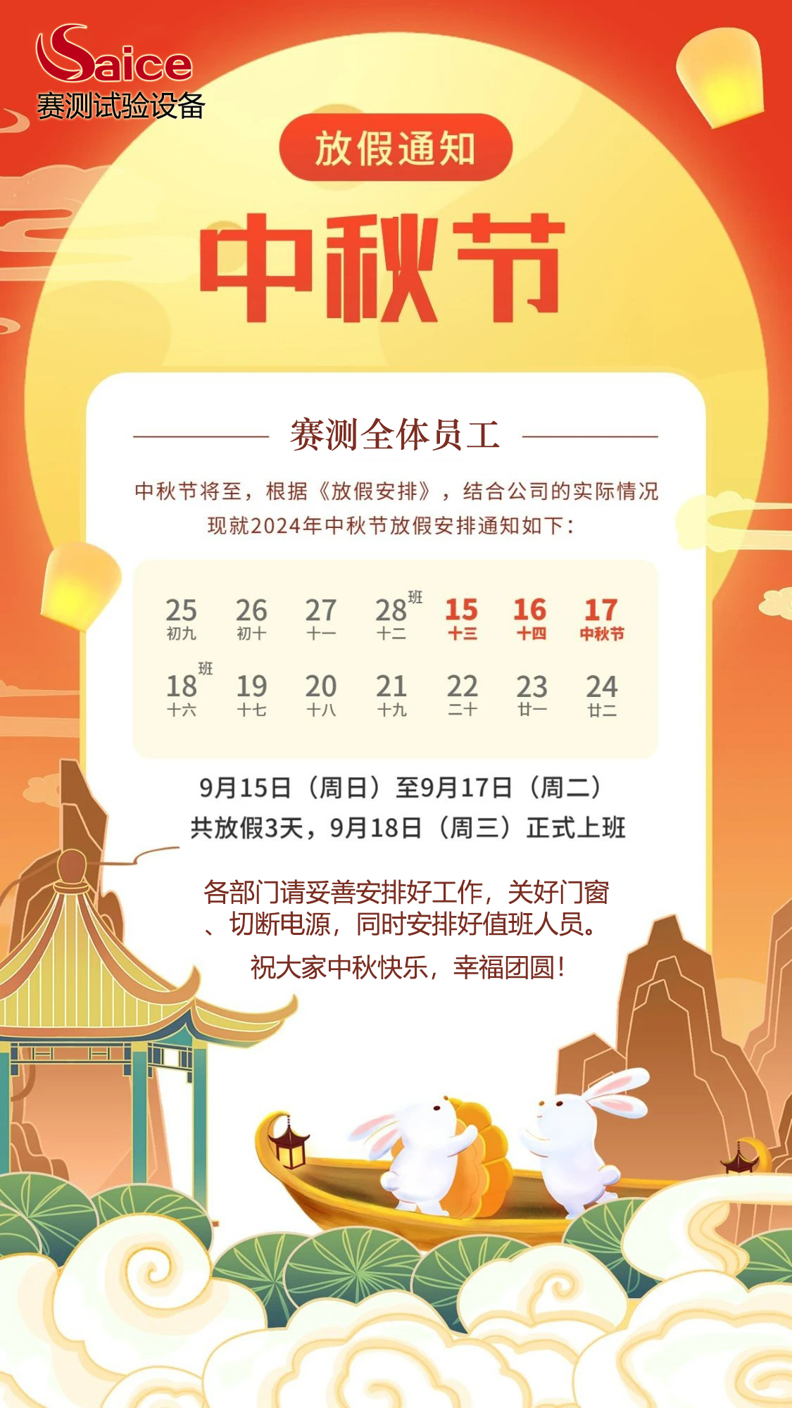 賽測(cè)中秋節(jié)放假通知