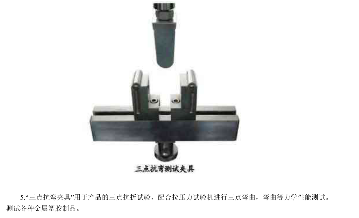 三點彎曲夾具是指夾具上有三個點與材料接觸,傳遞負載的方式是夾具支撐材料兩端處,中間受力點加載,使材料發(fā)生曲率變形,測試材料的質量和強度。三點彎曲夾具適用于薄板、板材、金屬材料、塑膠材料、玻璃制品等材料的彎曲測試試驗。